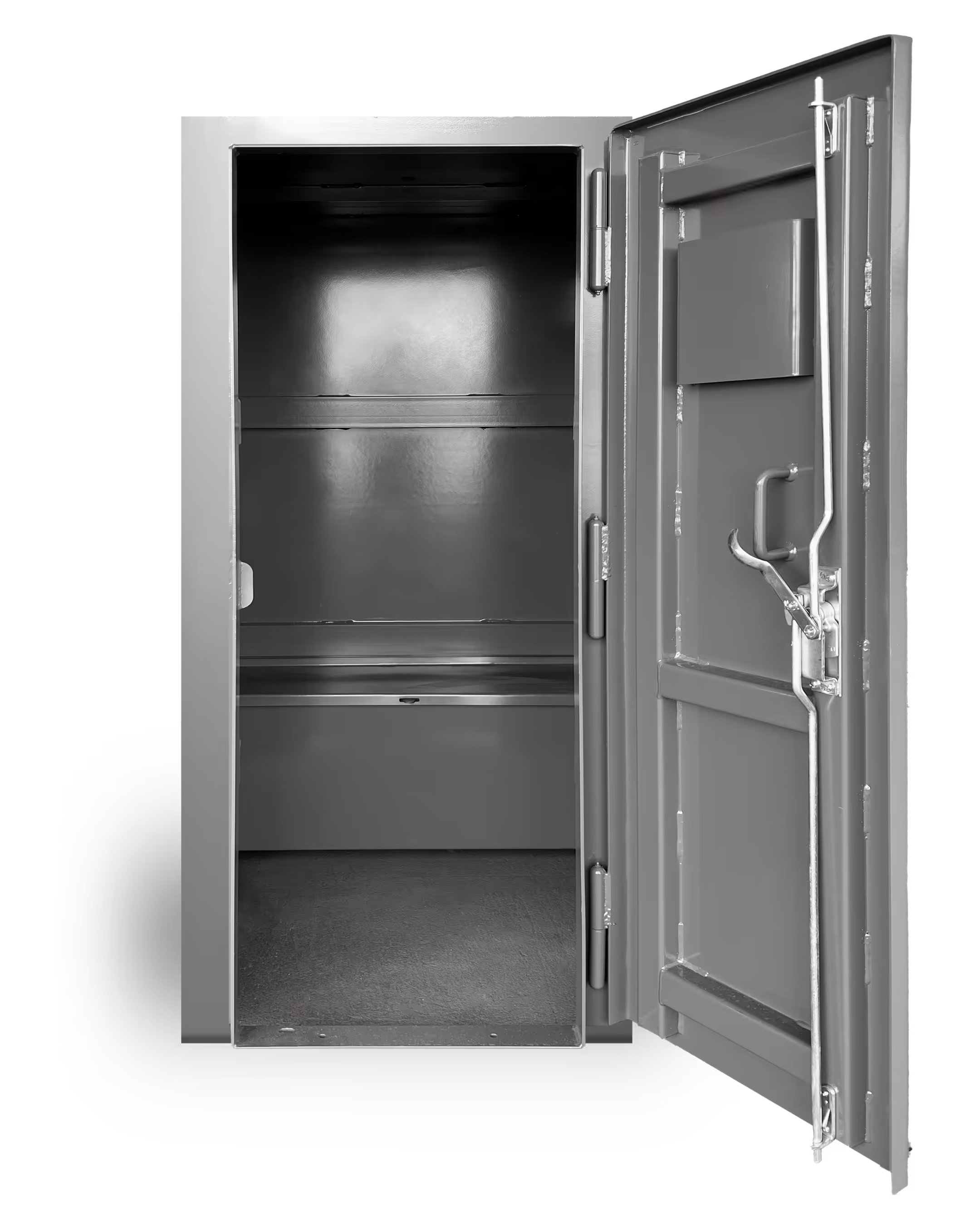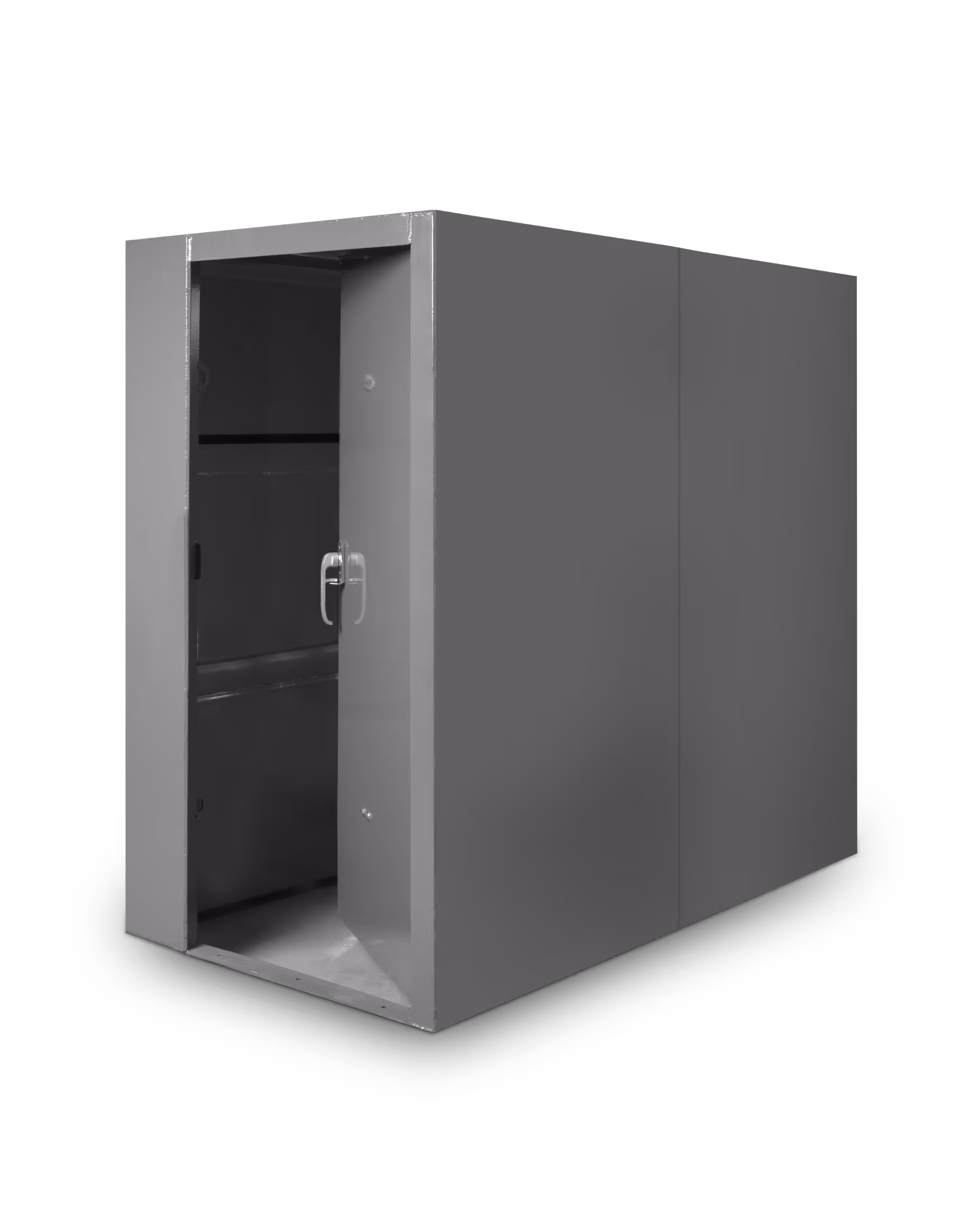 The Fortress is an above-ground storm shelter made of 1/4 inch steel with heavy, 5.4 pound channel reinforcements. Whether you place it in the yard, under a carport, in the garage, or anywhere else that you have a concrete pad, this storm shelter is created for battle. It features an in-swing door (out-swing on 3'x5' & 4'x4') and an escape hatch (not included on 3'x5') that's removable from the inside, making it nearly impossible to get trapped by storm debris.