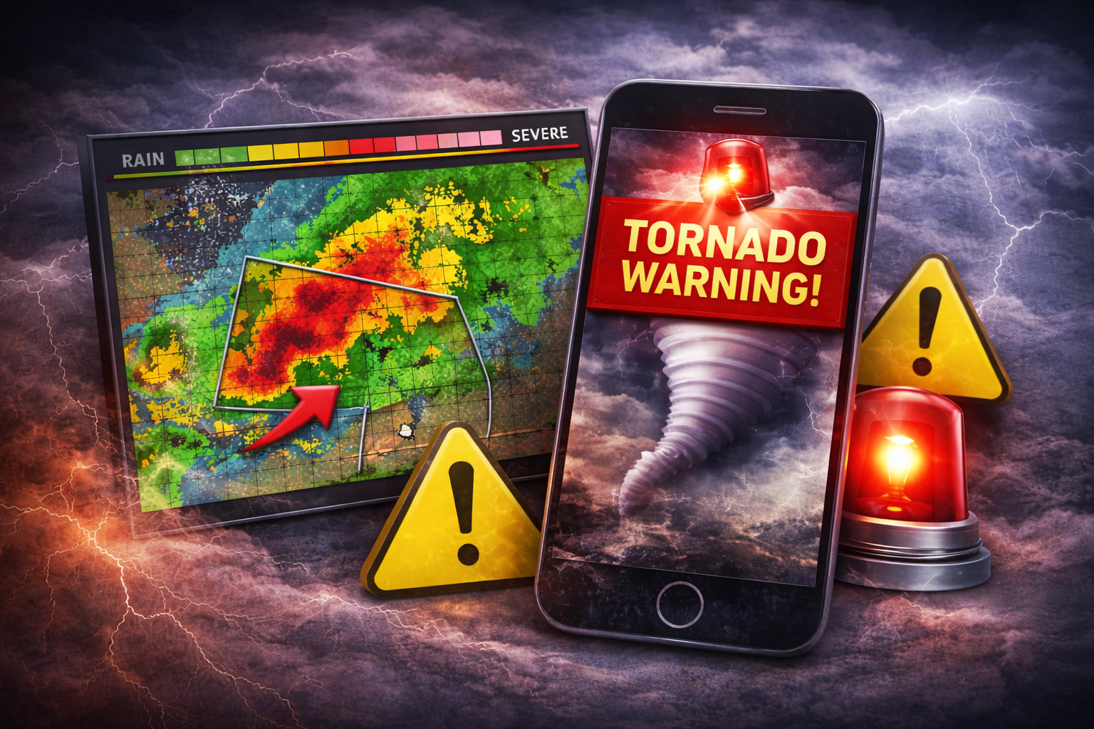 Storm Mode™ provides real-time storm context using official National Weather Service watches, warnings, and radar data.